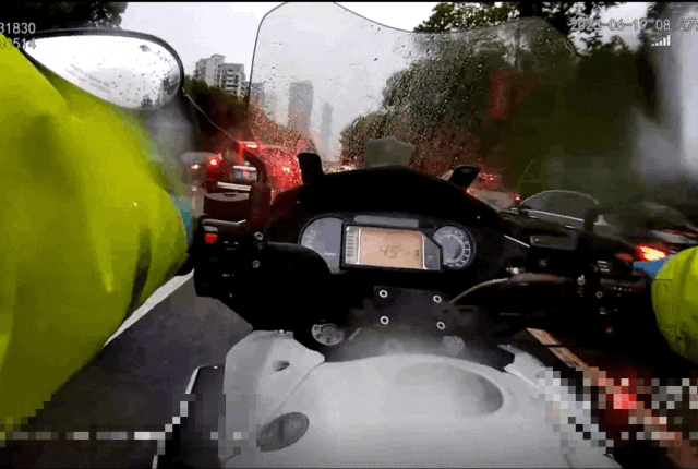 ▲6月19日8点10分,交警支队高架大队民警沈林在蠡湖大桥执勤时,遇到群众求助,该车上有一肺高压病人要送往人民医院准备肺移植手术,但途中氧气用尽,情况十分紧急。正值早高峰大流量时段,加上大暴雨,高架道路严重拥堵。民警立即安排车辆改走辅道,铁骑前方开道疏散车辆,仅用18分钟就将求助车辆安全护送到医院。