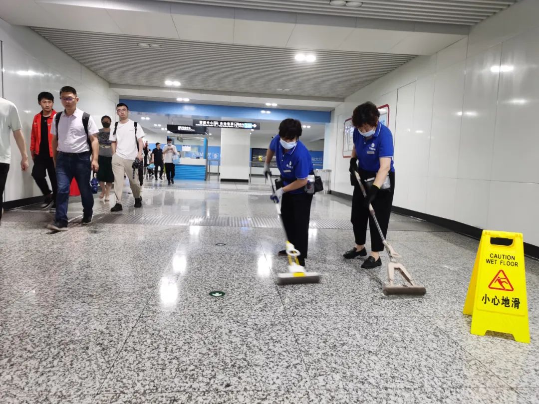 无锡地铁全线车站配备了防滑垫、防汛专用沙袋等防汛物资,以防止雨天乘客跌滑以及出现雨水滴落的情况。针对乘客的携带的雨伞、雨披等雨具带来的站台、站厅积水现象,车站人员及时拖干地面雨水,并在积水处附近设置“小心地滑”的警示牌。